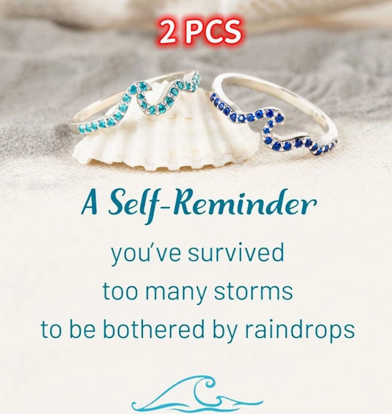 🌊 Sparkling Tide Wave Rings - Set of 2 light blue & dark blue | Silver & Blue Zirconia 💙 One for you & one as a gift!
